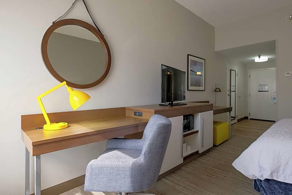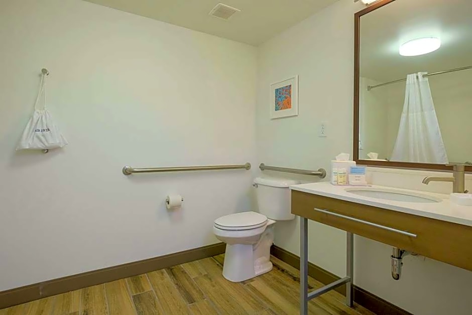 This mobility and hearing accessible, non-smoking room features one king-sized bed, and an accessible roll-in shower. The room also has a visual alarm and notification devices for the doorbell or door knock and incoming phone calls. The room features comfortable soft seating, microwave, refrigerator, a HDTV, and easy to operate alarm clock/radio. The free WiFi will help you stay connected while on the road. If you prefer not to work at the desk, you can use the convenient lapdesk instead. You'll also enjoy the convenience of having a coffeemaker with tea service and iron/ironing board in your room. Any corresponding photo may not reflect the specific accessible room type or room feature.